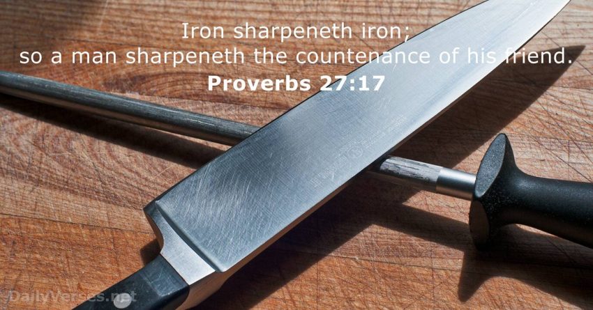 Pro 27:17 (NKJV) β βAs iron sharpens iron, so a man sharpens the countenance of his friend.β