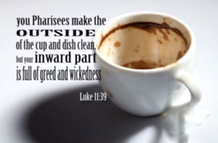 Luke 11:38–40 — “When the Pharisee saw it, he marveled that He had not first washed before dinner. Then the Lord said to him, ‘Now you Pharisees make the outside of the cup and dish clean, but your inward part is full of greed and wickedness. Foolish ones! Did not He who made the outside…